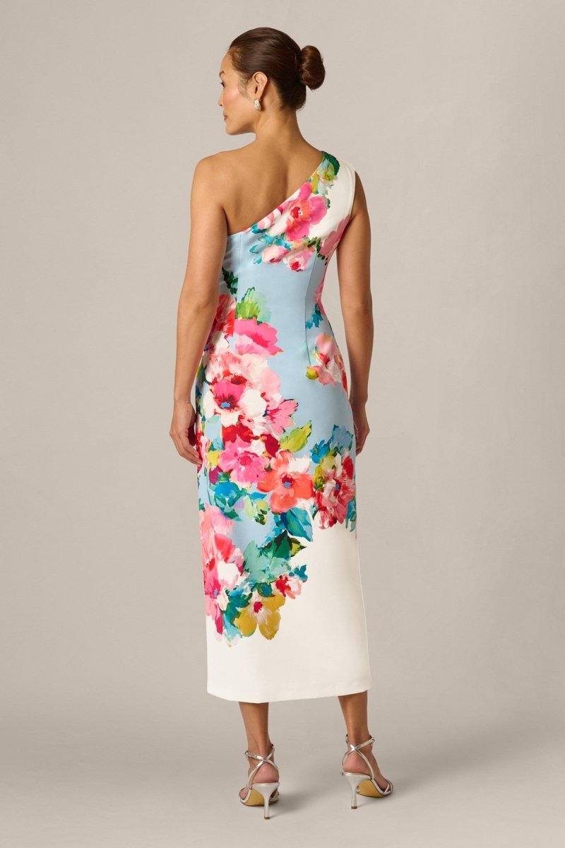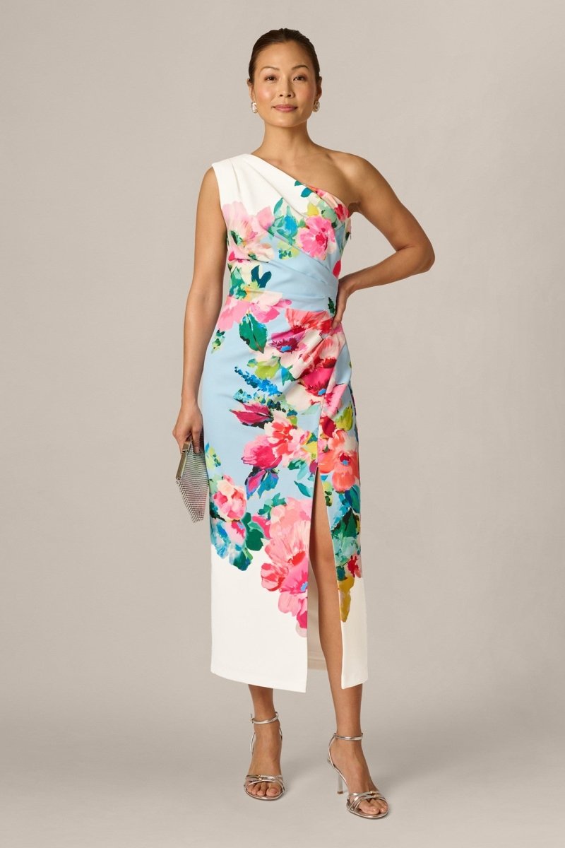 Deze verfijnde jurk combineert een moderne snit met een romantische bloemenprint en is daarmee de perfecte keuze voor stijlvolle gelegenheden. De asymmetrische one-shoulder halslijn geeft de jurk een elegante, modieuze uitstraling en laat subtiel één schouder vrij voor een vrouwelijke touch.
