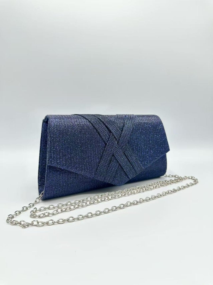 Deze clutch straalt tijdloze klasse uit met haar subtiele glitterafwerking en verfijnd geweven detail op de flap. Het compacte formaat (21 x 5 x 11 cm) maakt haar ideaal voor essentials zoals telefoon, lipstick en sleutels, zonder in te leveren op elegantie.