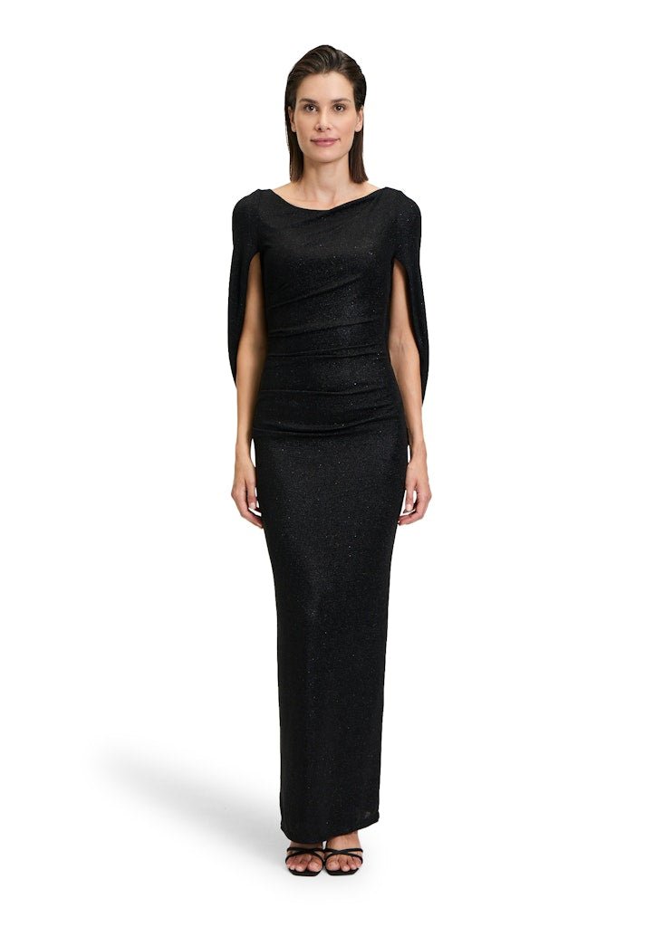 Laat een blijvende indruk achter met deze elegante avondjurk van Vera Mont. Deze lange, zwarte galajurk is een toonbeeld van tijdloze klasse, perfect voor formele gelegenheden zoals gala’s, bruiloften of exclusieve diners.