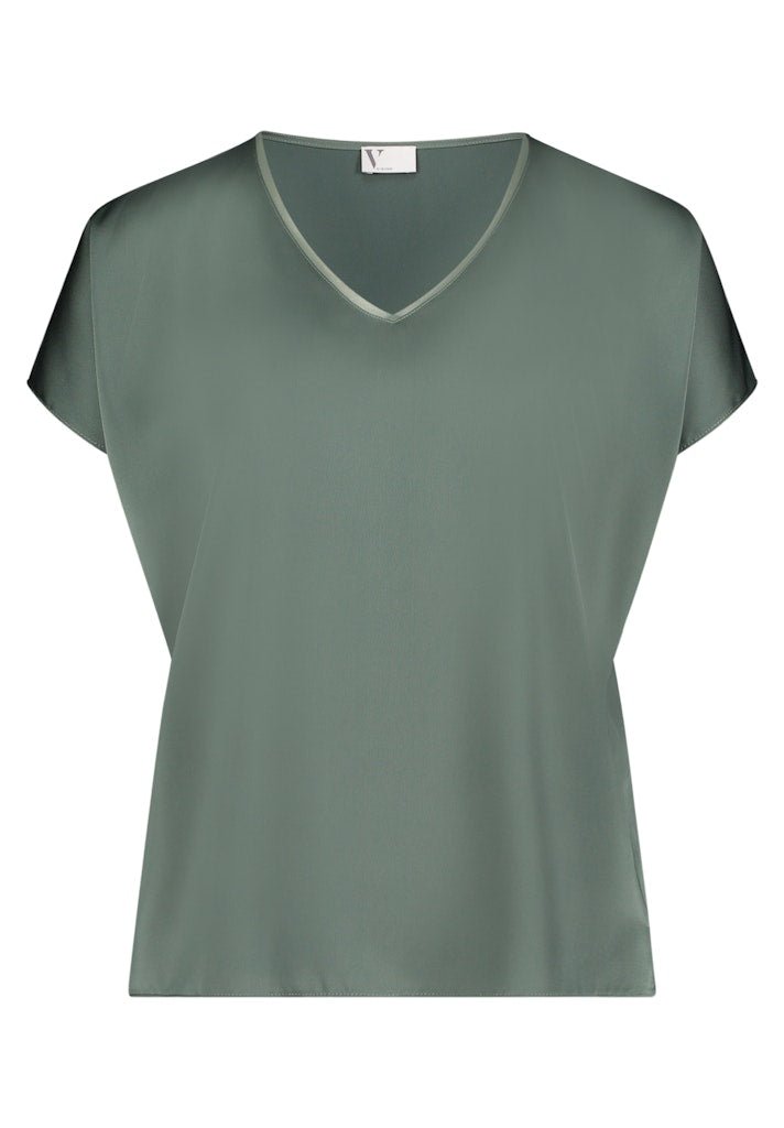 Deze elegante top van V by Vera Mont is een tijdloze essential die moeiteloos stijl en draagcomfort combineert. De top is uitgevoerd in een soepele, licht glanzende stof met een mooie valling en voelt prettig aan op de huid. Dankzij de losvallende pasvorm en de subtiele V-hals heeft dit model een flatterende en vrouwelijke uitstraling.