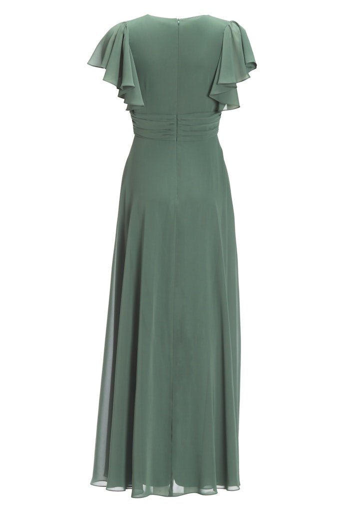 Deze stijlvolle jumpsuit combineert het vrouwelijke silhouet van een avondjurk met het comfort van een jumpsuit. Gemaakt van soepelvallende chiffon straalt dit ontwerp elegantie en verfijning uit, perfect voor feestelijke gelegenheden zoals bruiloften, gala’s of diners.