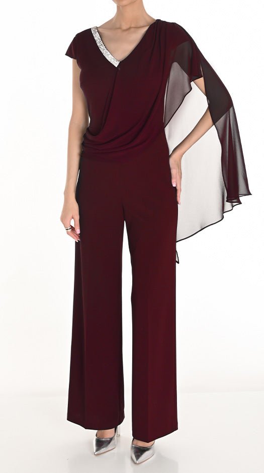 Maak een statement met deze prachtige burgundy jumpsuit van Frank Lyman. Het ontwerp straalt klasse en verfijning uit dankzij de vloeiende pasvorm en de subtiele details.