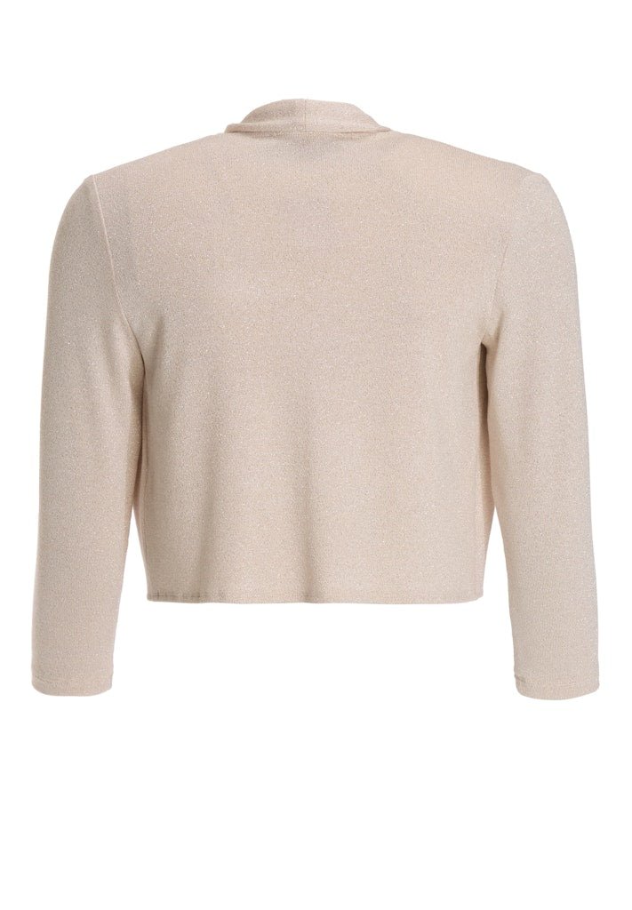 Dit elegante vest is de perfecte finishing touch voor iedere feestelijke of formele outfit. Het korte model met open voorzijde en driekwartmouwen valt mooi op taillehoogte en zorgt voor een verfijnde, vrouwelijke uitstraling. De subtiele glans door het gebruik van metallic draad geeft het vest een luxe effect, zonder overheersend te zijn.