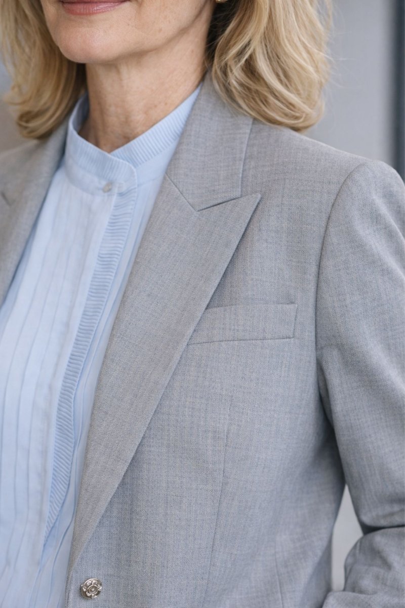 Dankzij de hoogwaardige materiaalsamenstelling voelt de stof zacht aan op de huid, is zij ademend én behoudt de blouse mooi haar vorm gedurende de dag. De lange mouwen met manchetten geven het geheel een tijdloze en professionele look, terwijl de zachte lichtblauwe tint moeiteloos combineert met pantalons, rokken of een elegant pak.