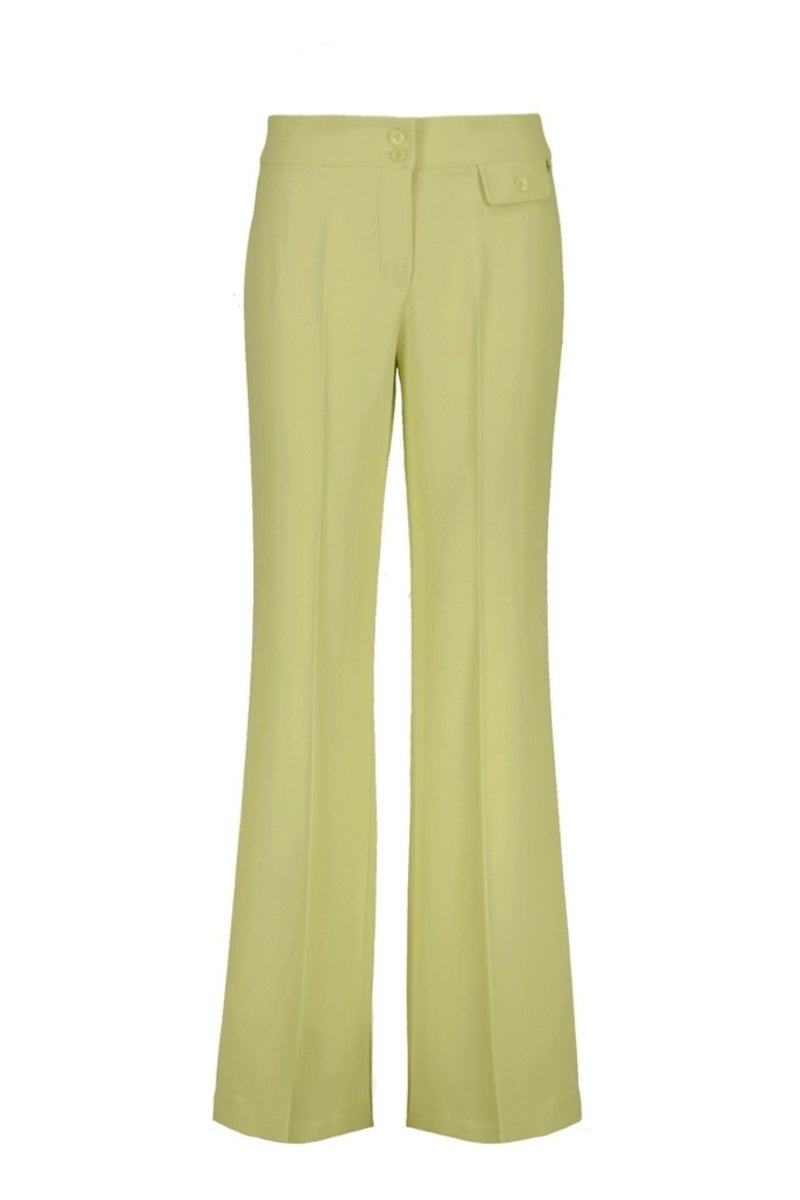 Deze stijlvolle pantalon heeft een elegante flair-pasvorm en is een perfecte mix van comfort en klasse. De hoge taille zorgt voor een mooi, vrouwelijk silhouet, terwijl de subtiele persvouw aan de voorzijde de pantalon een verzorgde en verfijnde uitstraling geeft. De licht uitlopende pijpen verlengen optisch de benen en maken dit model bijzonder flatterend.