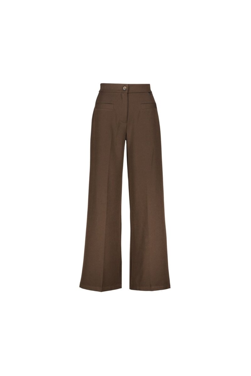De pantalon is voorzien van een hoge taille met een stijlvolle knoopsluiting en subtiele paspelzakken aan de voorzijde voor een strakke afwerking. Dankzij de neutrale beige tint is deze broek eindeloos te combineren — draag hem met een blouse en hakken voor een elegante uitstraling of met een losvallende trui en sneakers voor een moderne, ontspannen look.