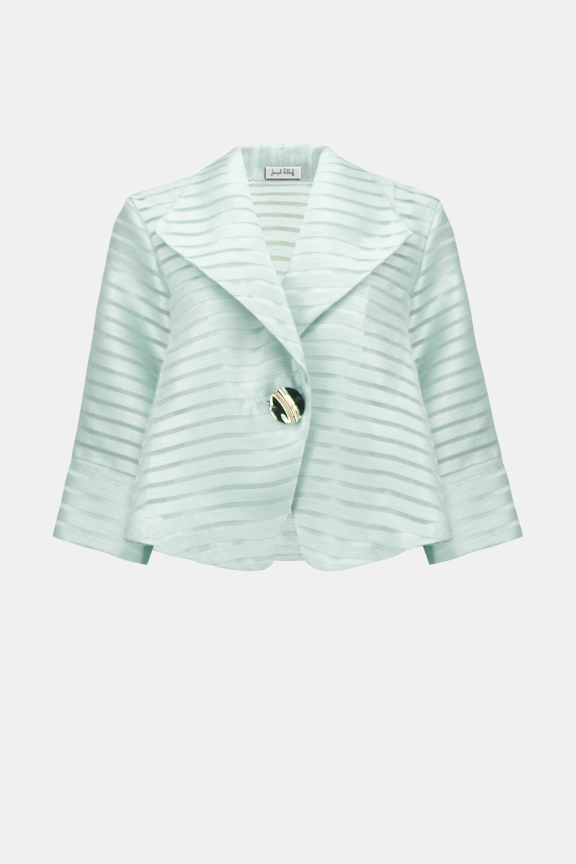 Deze stijlvolle jacket van Joseph Ribkoff Signature is een echte eyecatcher voor een elegante en complete outfit. De zachte pistachekleur in combinatie met de subtiele transparante streepstructuur geeft dit jasje een verfijnde, luxe uitstraling die perfect past bij feestelijke gelegenheden.