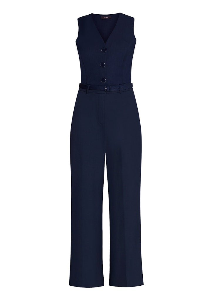 Dankzij de tijdloze navy kleur is deze jumpsuit veelzijdig te combineren met zowel hakken als elegante accessoires, waardoor je moeiteloos een complete look creëert.