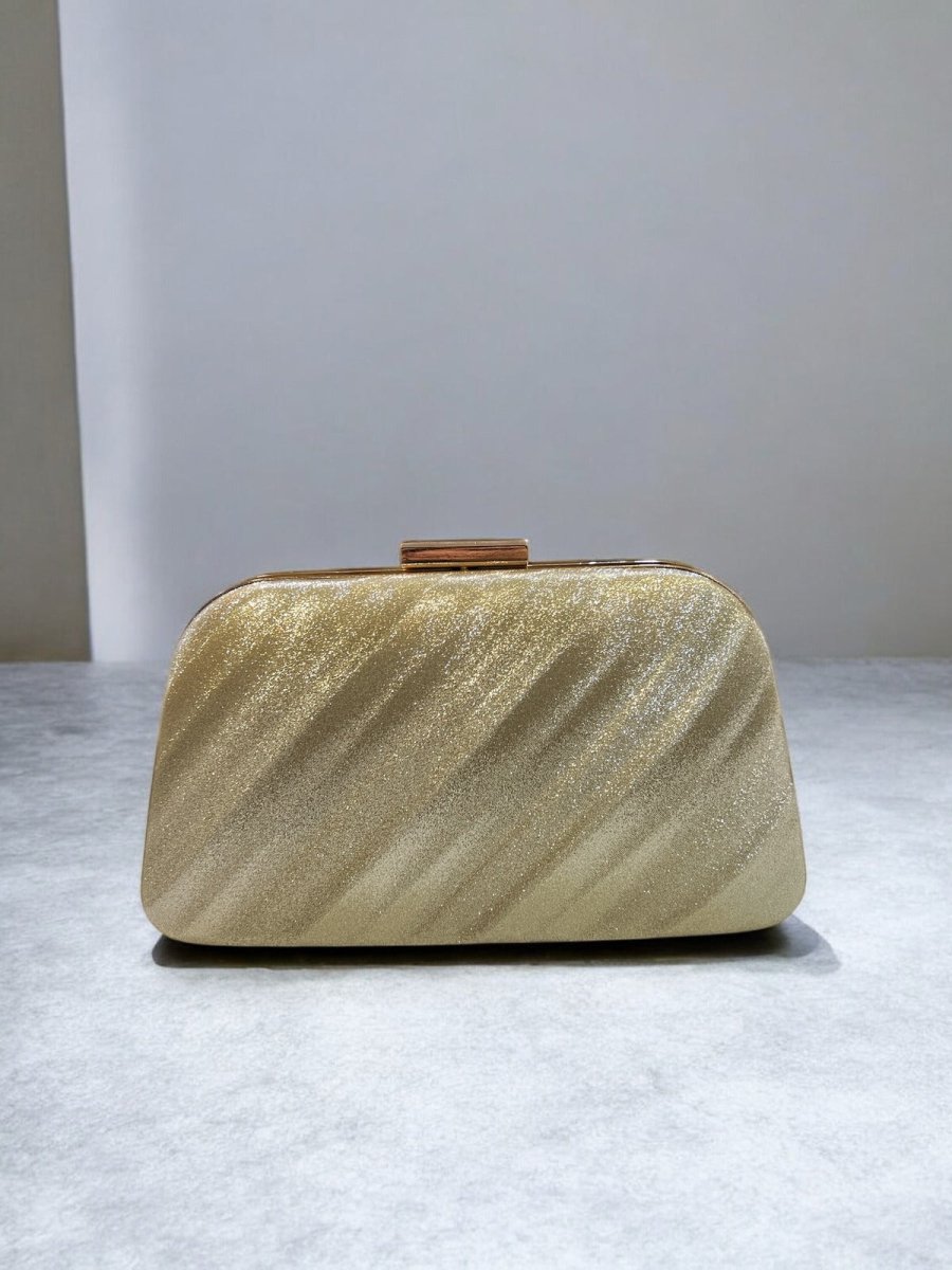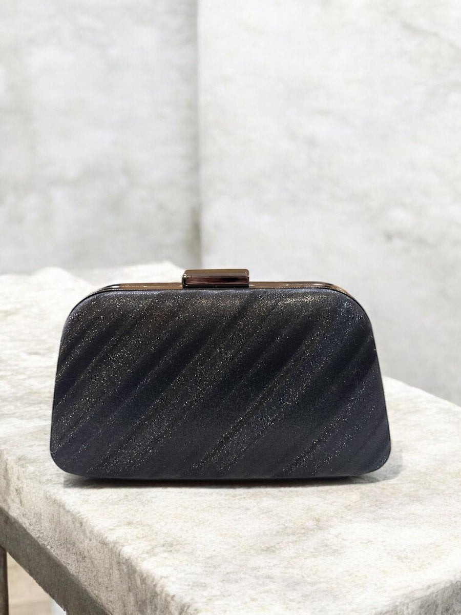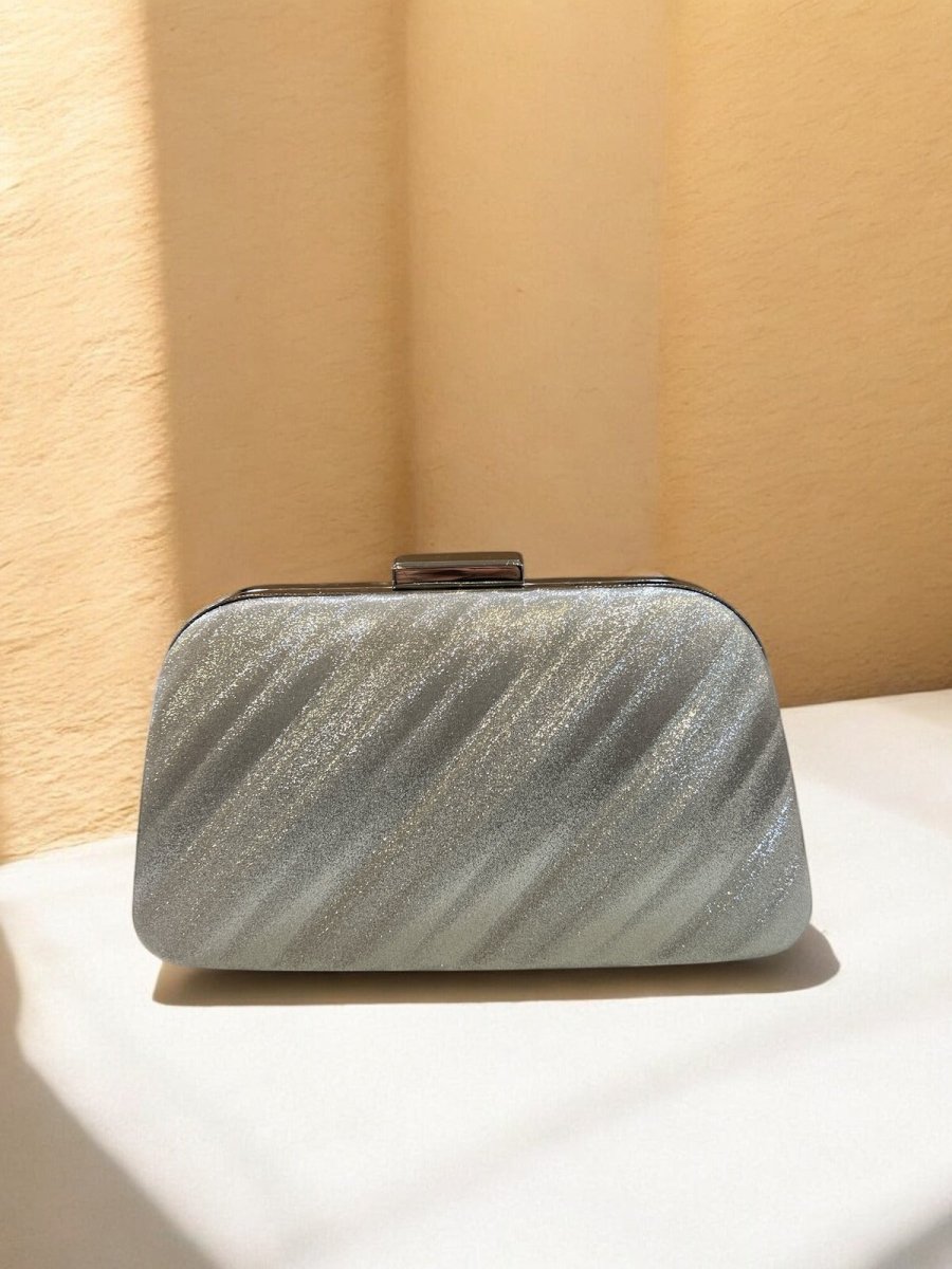 Deze stijlvolle clutch is de perfecte finishing touch voor iedere feestelijke outfit. De tas heeft een subtiele glitterafwerking met een elegant golvend patroon, wat zorgt voor een luxe en verfijnde uitstraling. Dankzij het compacte maar praktische formaat neem je moeiteloos je essentials mee, zoals je telefoon, pasjes en lipstick.