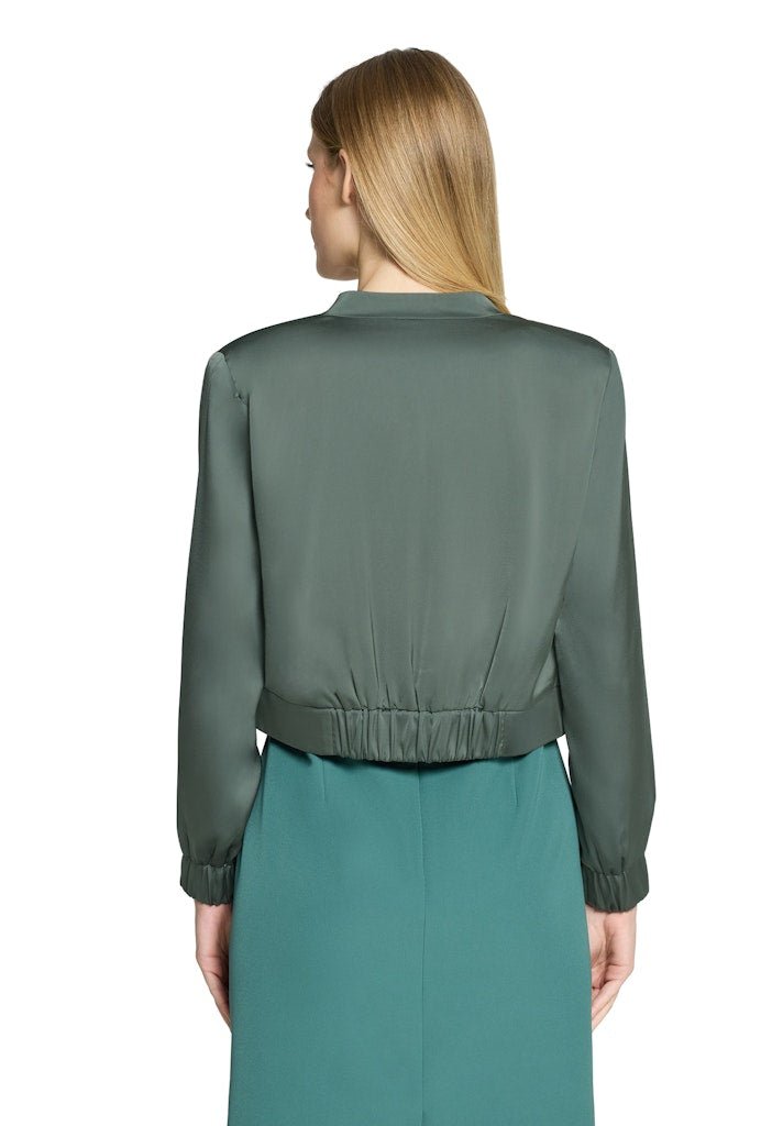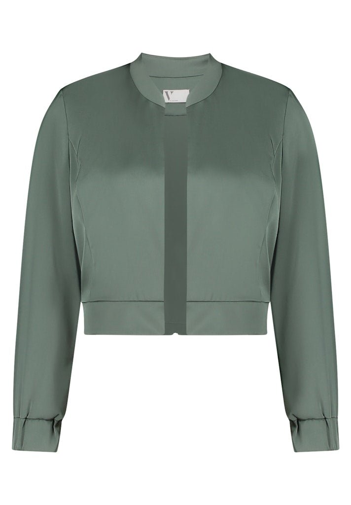 Dit elegante satijnen jasje is de perfecte aanvulling op een feestelijke of formele outfit. Het jasje is uitgevoerd in een luxe satijnkwaliteit met een subtiele glans en heeft een moderne, korte lengte die mooi aansluit op jurken en pantalons met een hogere taille. De ronde halslijn en open voorzijde zorgen voor een verfijnde en tijdloze uitstraling.