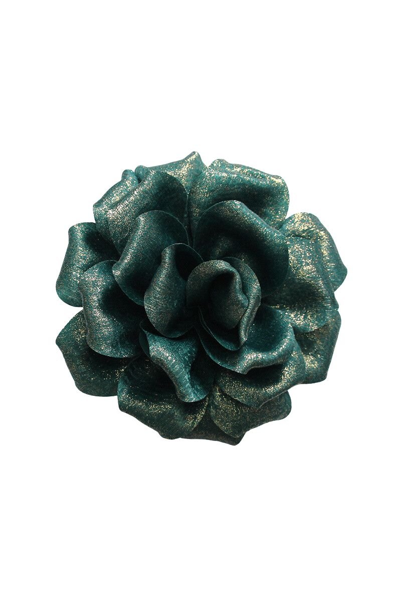 De Stella Flower Corsage is een schitterende accessoire die je outfit in één oogopslag extra flair geeft. Deze handgevormde bloem is gemaakt van een glanzende stof met metallic look, waardoor hij een luxe en feestelijke uitstraling heeft. Dankzij de combinatieclip aan de achterkant draag je hem eenvoudig als broche, haarclip of tasversiering.