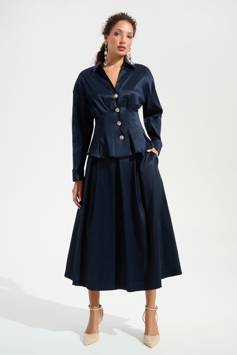 Stretch taffeta flare blouse Midnight blue