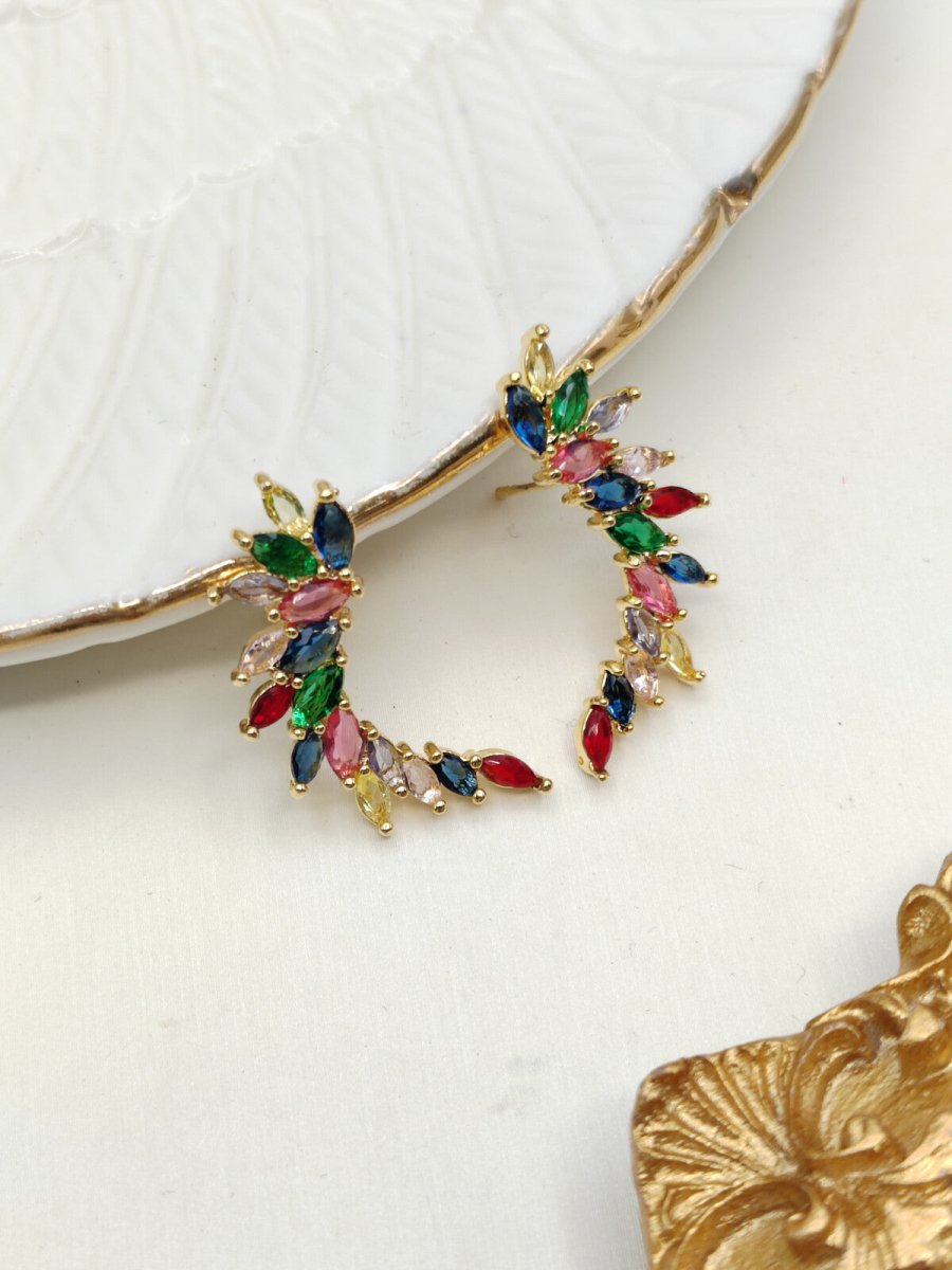 • Vorm: Halve creool met bladvormige strass-stenen