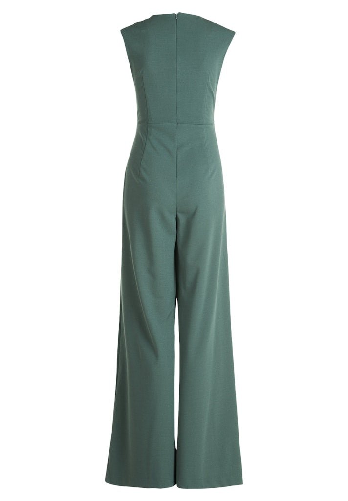 Deze stijlvolle jumpsuit is een perfecte combinatie van comfort en elegantie. Met uitlopende palazzo-pijpen creëert het een flatterend en luchtig silhouet. De V-hals en mouwloze afwerking geven een verfijnde uitstraling, ideaal voor zowel casual als chique gelegenheden. Gemaakt van hoogwaardig crêpe-materiaal, voelt de stof licht en soepel aan. De naadzakken zorgen voor extra functionaliteit, terwijl de ritssluiting aan de achterzijde een mooie, gestroomlijnde look biedt. Verkrijgbaar in de kleuren eucalyptusgroen of roze met wit – een stijlvolle keuze voor elke gelegenheid!