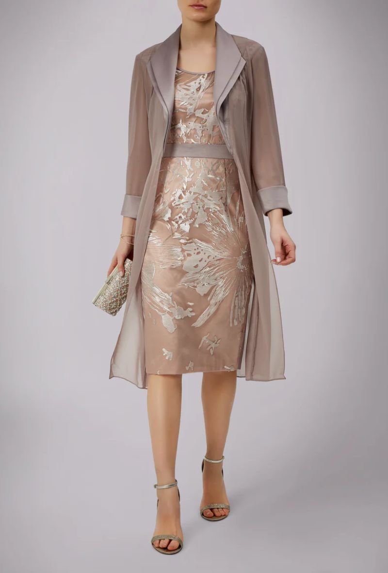 Voeg een vleugje elegantie toe aan uw speciale dag met onze exclusieve Moeder van de Bruid of Bruidegom set. Deze prachtige set bestaat uit een verfijnde jurk en een bijpassende chiffon blazer coat, speciaal ontworpen om u te laten stralen.