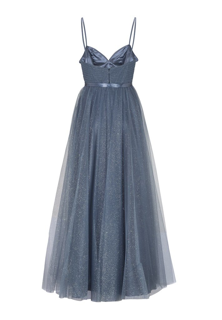 Een gegarandeerde dosis glamour! Met deze glamoureuze avondjurk ben je verzekerd van een wow-effect: volledig versierd met tule voorzien van glitters, een diepe V-hals met ingebouwde cups en een sexy open rug. Waar wacht je nog op? Word de ster van het volgende evenement. Wat betreft de pasvorm en afmetingen: ons model is 175 cm lang en draagt maat 36. We raden aan om een maat groter te kiezen.