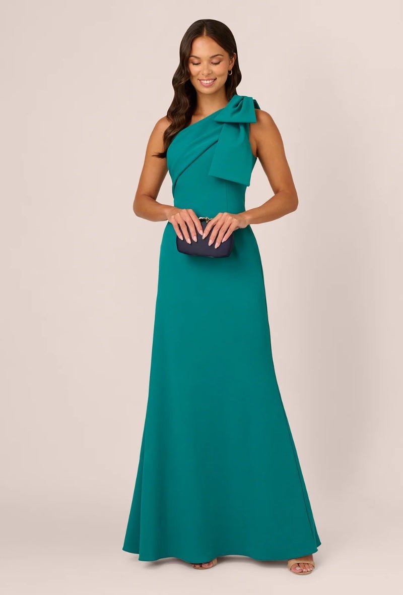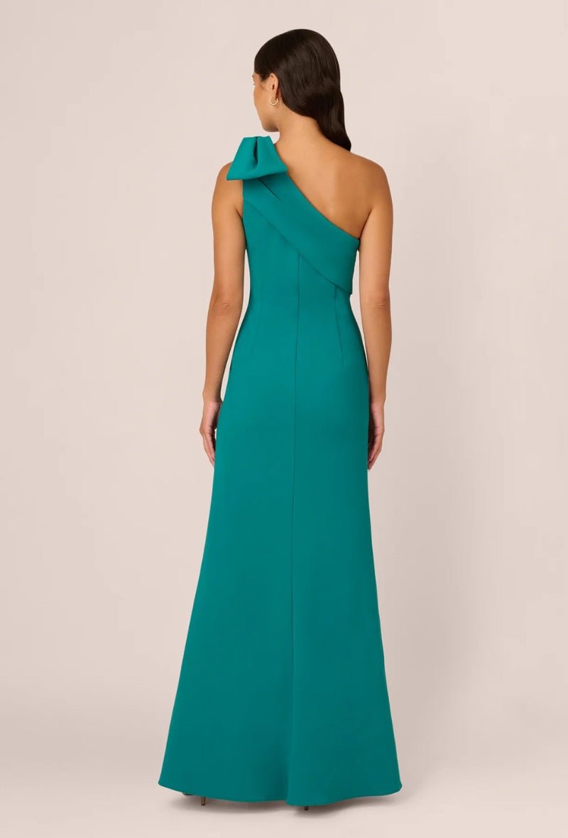Moderne stoftechnieken tillen deze klassieke avondjurk naar een nieuw niveau voor een onvergetelijke look. Deze jurk in mermaid-stijl straalt pure glamour uit. Het aansluitende lijfje en de elegante mermaid rok worden gecombineerd met een opvallende asymmetrische halslijn met één schouder, compleet met geplooide details en een grote strik die alle aandacht trekt. Gemaakt van rekbare crêpestof, heeft deze jurk geen taille-naad, wat zorgt voor een uitzonderlijk comfortabele en gestroomlijnde pasvorm.